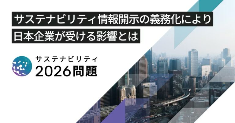 日本企業のSX実現、その先のグローバルプレゼンス向上を目指し、事業計画と整合させていく為に、サステナビリティデータの経営への利活用の体制を2026年の開示対応までに構築できるかどうか、それが”サステナビリティ2026問題”です。