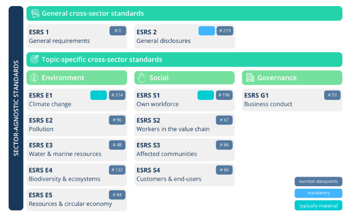 図1:ESRS基準別データポイント数の分布 (出典:envoria 、※本図は今回の修正草案公表前のもの)